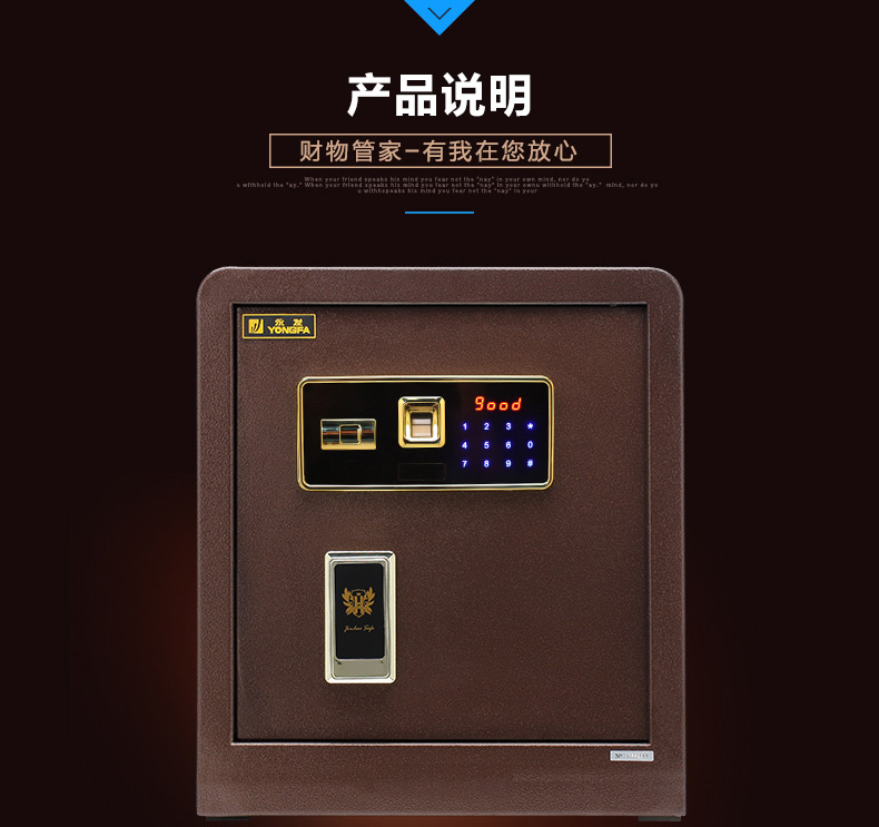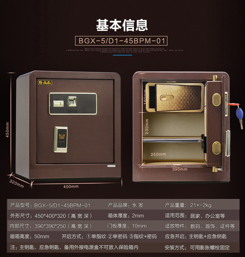 永發(fā)靈感指紋保管箱D-60BPM-01尺寸說明:600高*400寬*330深mm 重量:30kg