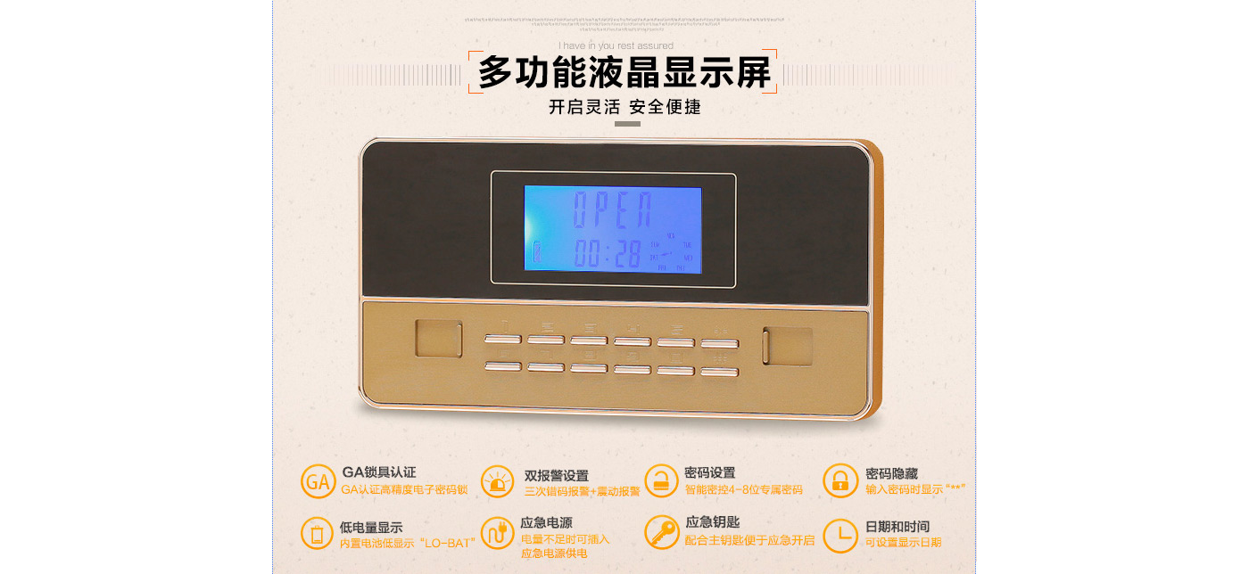 永發(fā)領君電子式保險箱D-30BL3C-02尺寸說明:300高*380寬*310深mm 重量:30kg